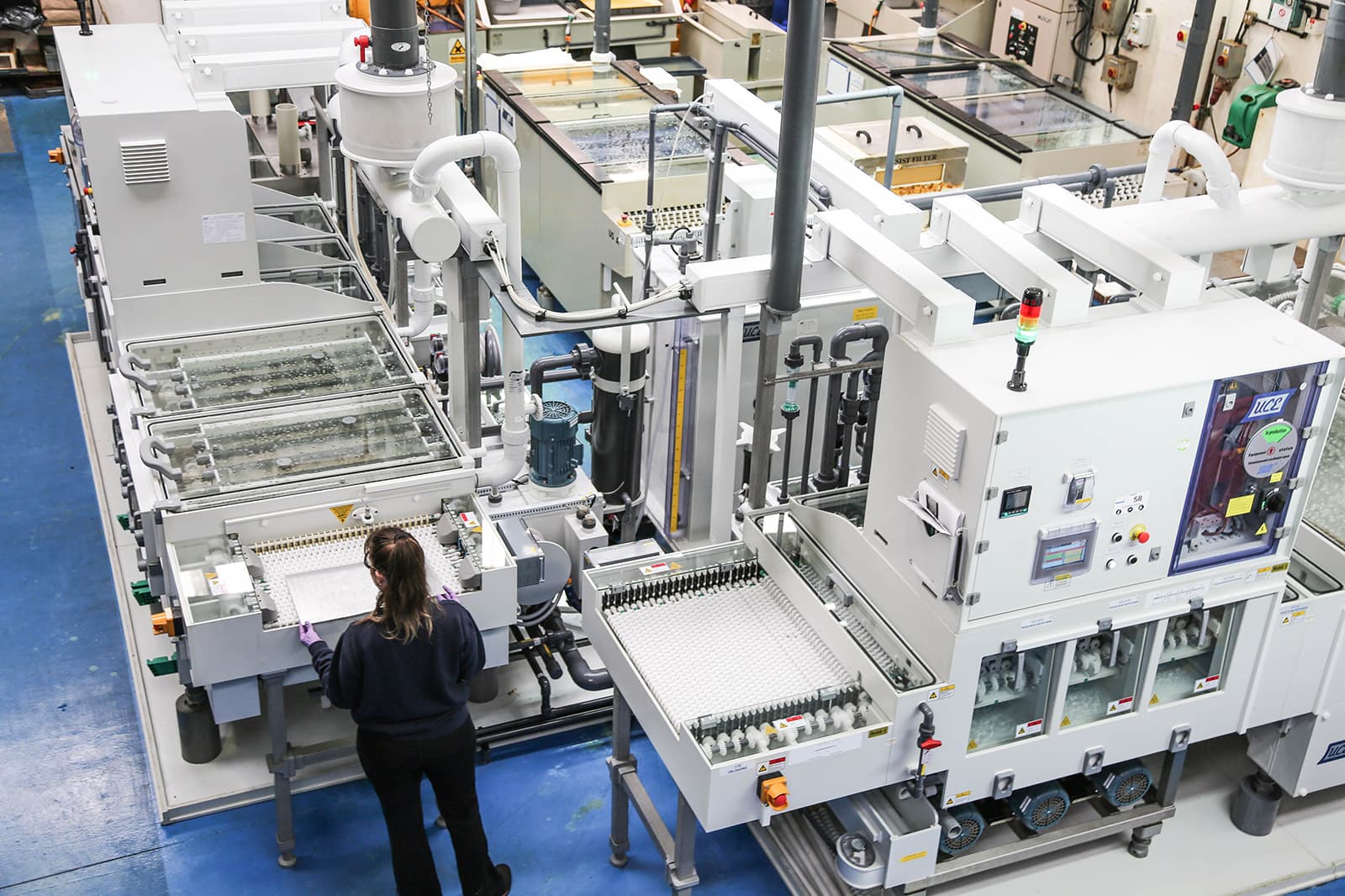 - New auto lines in front end (pre-clean, developing, stripping and post cleaning) fitted with auto dose units so chemistry additions are controlled (not down to operator interpretation)