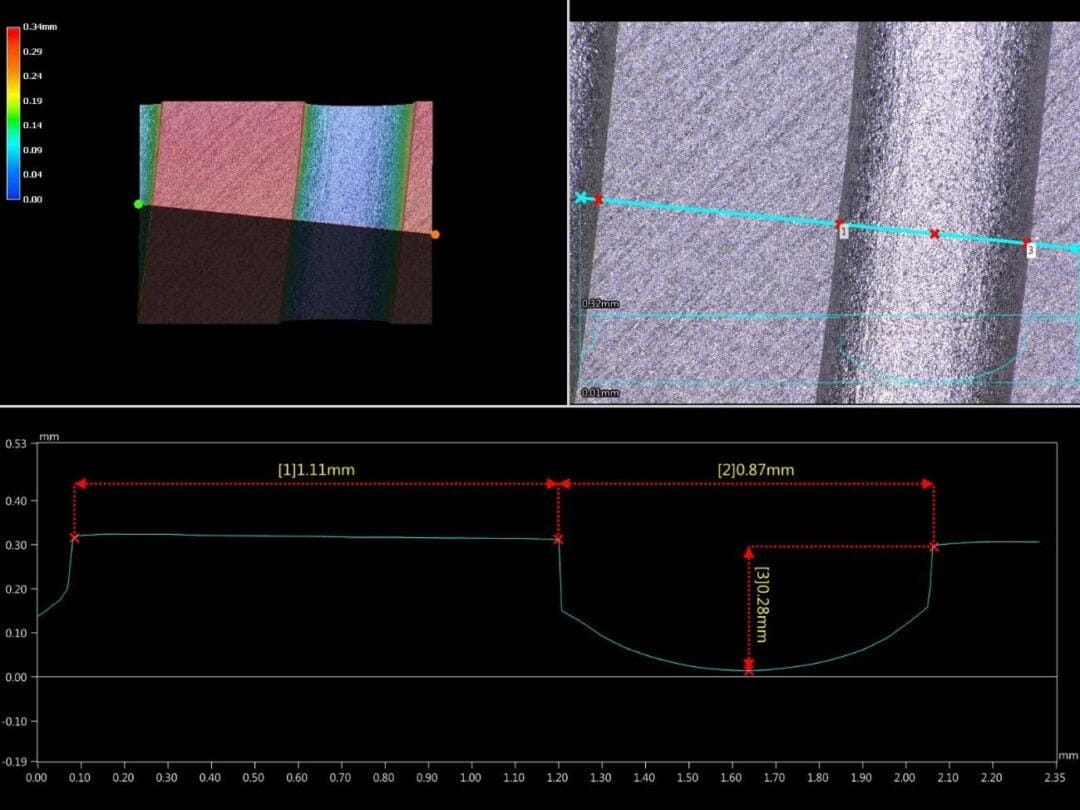 Figure 4: Measurements of channel and ridge dimensions (taken with a digital 3D microscope)